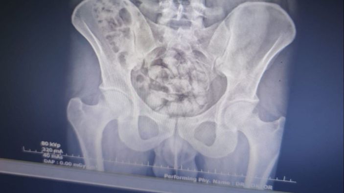 Burada çekilen röntgen filminde, midesinde 25 kapsül şeklinde paketlenmiş halde 351 gr gelen metamfetamin olduğu tespit edildi.