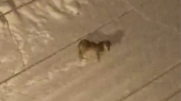 Kurdun mahalle ortasında yicecek araması bir vatandaşın cep telefon kamerasına yansıdı.