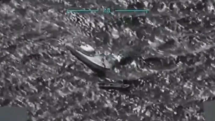 Milli Savunma Bakanlığı, Deniz Kuvvetleri Komutanlığına ait insansız hava aracı (İHA) ile tespit edilen, Yunanistan'a ait sahil güvenlik botunun, Sisam Adası'nın kuzeydoğusunda kalan bölgede düzensiz göçmenleri taşıyan botu bıraktığı anlara ilişkin görüntü paylaştı.