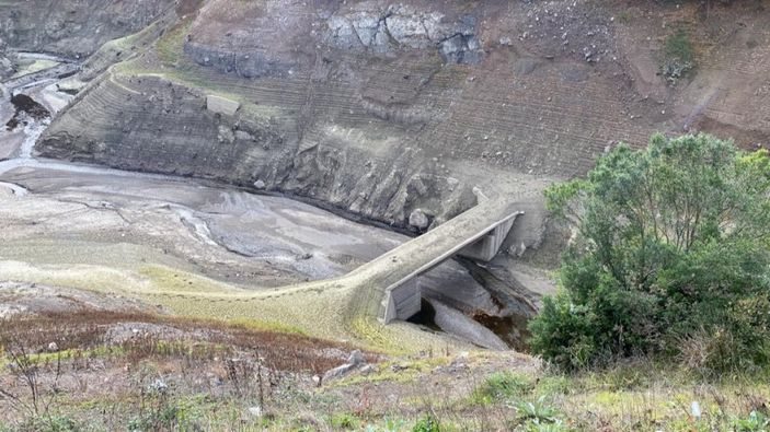 Yuvacık Barajı'nda sular çekildi, köprüler göründü ViDEO