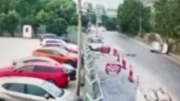 Bisikletliye çarpan otomobil çarpmanın etkisiyle taklalar atarken bisiklet kullanan şahsın yola savrularak ağır yaralandığı kaza güvenlik kamerasına yansıdı.