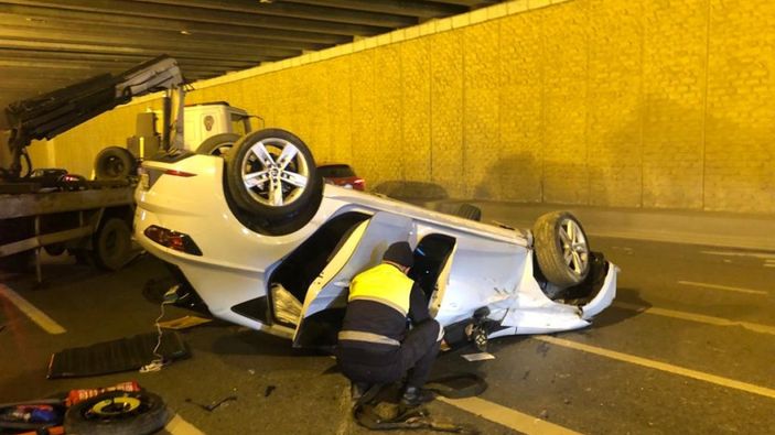 İstanbul'un Zeytinburnu ilçesinde saat 23.30 sıralarında ismi öğrenilemeyen seyir halindeki sürücü, Topkapı alt geçitte henüz bilinmeyen bir nedenle direksiyon hakimiyetini kaybederek orta refüje çarparak takla attı.