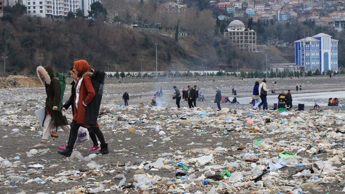 Denizin geri bıraktığı evsel atıklar, kemirgen ölüleri, enjektör, iğne, serum gibi tıbbi atıkların arasında güçlükle ilerleyen vatandaşlar, adeta çevre felaketinin ortasında piknik yaptı.