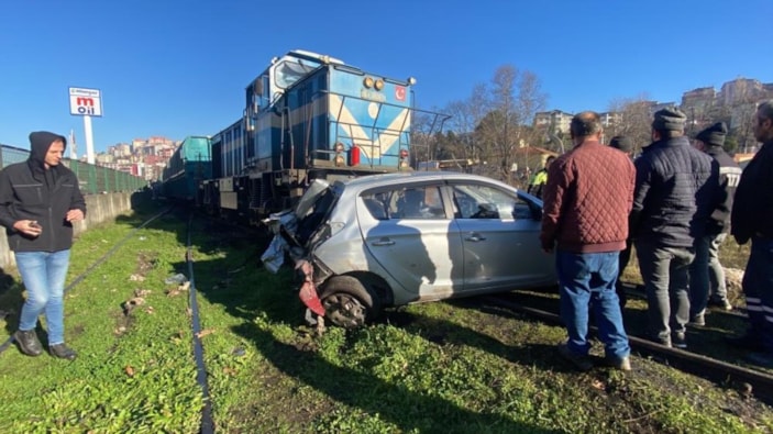 Mehmet K. idaresindeki otomobil, İstasyon Caddesi’ne seyir halindeyken geçitten ilerleyen yük treni, otomobile çarparak sürüklemeye başladı.