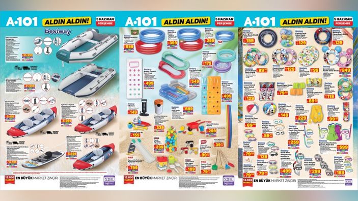 A101’de plaja hazırlık başlıyor: Şişme havuz 175 TL, deniz simidi 89 TL, kolluk 79 TL…