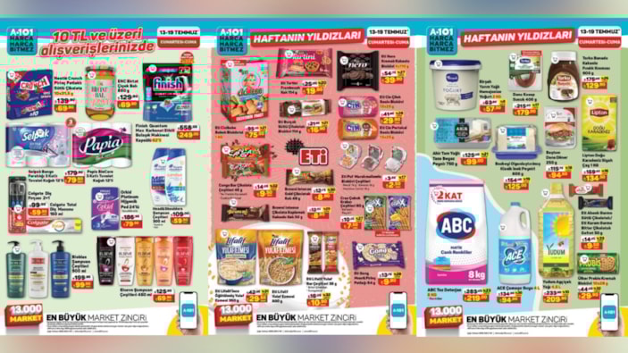 13-19 Temmuz tarihleri arasında geçerli olacak bu katalogda, evinizin temel ihtiyaçlarından gıdaya, temizlik ürünlerinden kişisel bakım ürünlerine kadar birçok üründe harika indirimler sizi bekliyor.