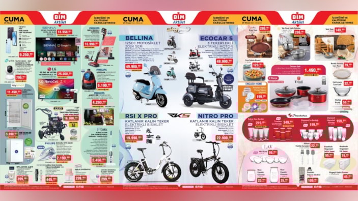 BİM, 25 Nisan 2025 Perşembe günü için hazırladığı aktüel ürünler kataloğunu yayınladı. Teknolojiden bebek bakım ürünlerine, motosikletlerden bisikletlere birçok ürün raflarda yer alacak. İşte BİM 25 Nisan Aktüel Katalog...