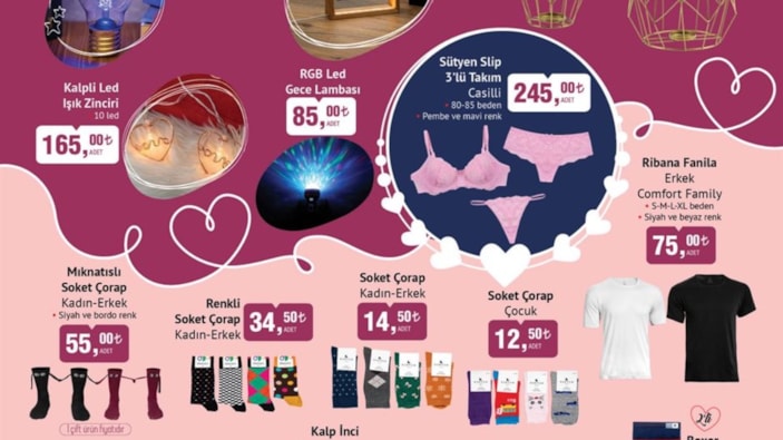 BİM, aktüel ürünleri kategorisinde bu hafta sevgililere özel ürünler içeriyor.
