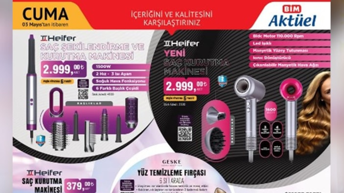 BİM 3 Mayıs 2024 aktüel ürünler kataloğu yayınlandı. BİM'e bu Cuma günü, Dyson saç şekillendirici ve kurutma seti muadili geliyor. Üstelik fiyatı kaçırılmayacak cinsten.