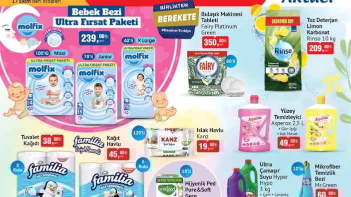 17 Ekim Salı'dan itibaren geçerli olan fiyatlarda aynı zamanda gıda, temizlik, bakım ve hijyen ürünleri de yer alacak.