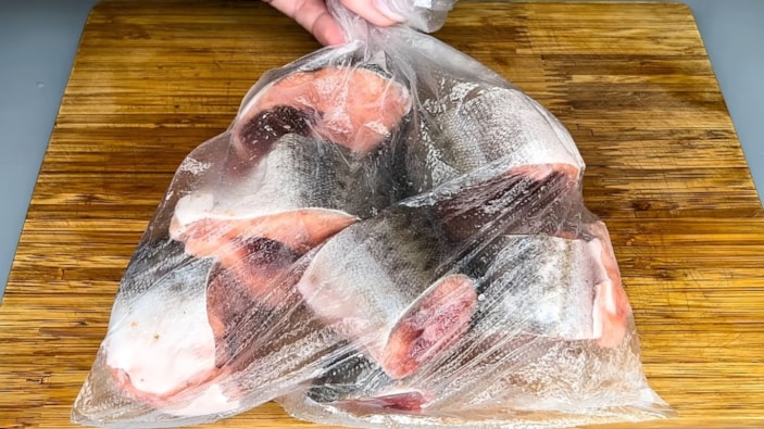 Her iki durumda da, balığı hava geçirmeyen bir poşete veya plastik kaba koyup, üzerine hava almayacak şekilde sıkıştırarak dondurun.
