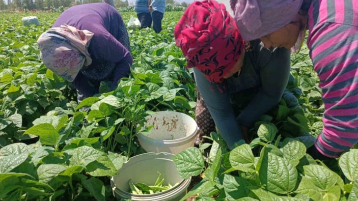 Fasulye tarlasında çalışan işçilerden Gülcan Sülün, fasulyenin fiyatının düşmesine üzüldüklerini söyledi.