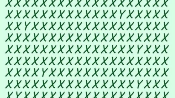 Resimde 'X' dışında farklı bir harf daha bulunuyor. Peki, siz resime bakınca farklı olan harfi kaç saniyede bulabileceksiniz?
