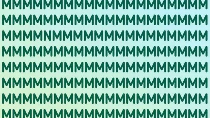 Paylaştığımız görselde yüzlerce 'M' harfi yer alıyor. Ancak bu 'M' harflerinin arasına gizlenmiş farklı bir harf daha var.