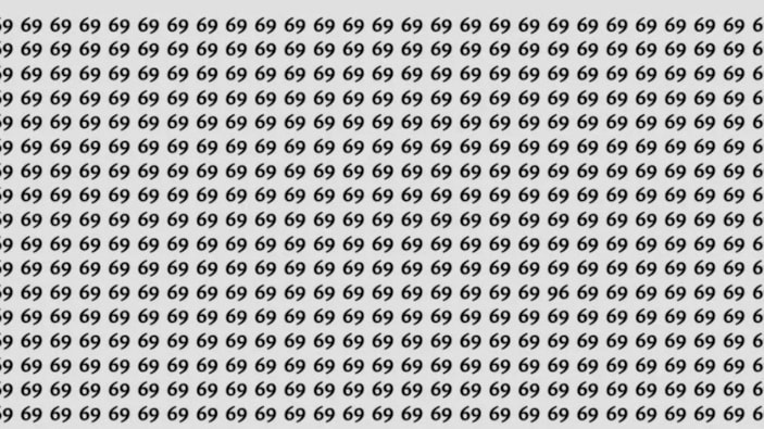 Resimde yüzlerce '69' sayısı bulunuyor. Fakat hepsinin arasında bir tane farklı sayı var.