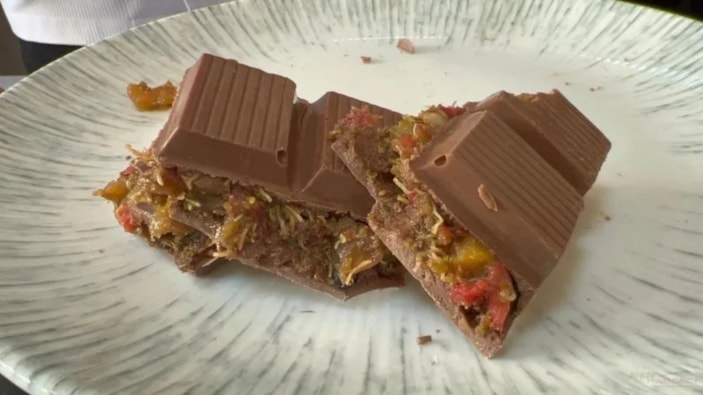 Çikolata içerisinde elma, ceviz, badem, kayısı gibi ürünlerin olduğunu vurgulayan Ölmez, "Malzemeler arasında en çok kullandığımız ürün kentin misket elması. Bu malzemeleri kullanmamızın nedeni yerel ürünlerimizin tadının daha baskın olması. Maliyeti de diğer çikolatalara göre düşük. Bu çikolatamız herkes tarafından uygulanabilir ve sürdürülebilir. Protein açısından yüksek, kalori açısından düşük bir çikolata. Henüz çikolatamıza bir isim vermedik ama isim ve tescil çalışmalarımız devam ediyor." ifadelerini kullandı.