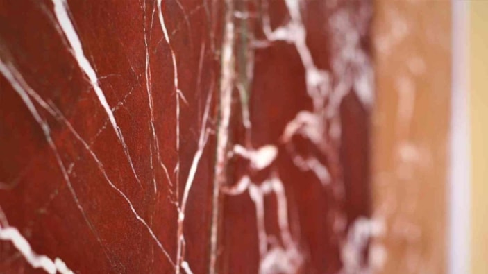 Elazığ’ın Alacakaya ilçesinde çıkarılan vişne renginde, damarlı yapıya sahip, dekoratif amaçlı yoğun ilgi gören mermer, 4 kıtada 60 ülkeye ihraç ediliyor.