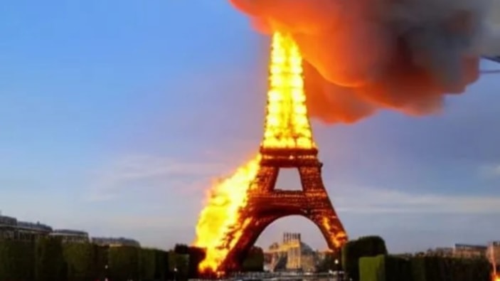 Oldukça gerçekçi duran Eyfel Kulesi yangını görüntüleri birçok sosyal medya kullanıcısının bu olaya inanmasına sebep oldu.