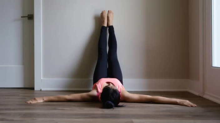 Sırtınızı duvara yaslayarak yere uzanın. Bacaklarınızı duvara doğru kaldırın, dizlerinizi hafifçe bükün ve topuklarınızı yukarı doğru itin. Bacaklarınızı yavaşça indirin ve tekrar kaldırın. Her bacak için 10-15 tekrar yapın.