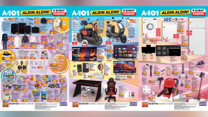 A101, 6 Şubat Perşembe günü için hazırladığı yeni Aldın Aldın aktüel kataloğunu duyurdu.