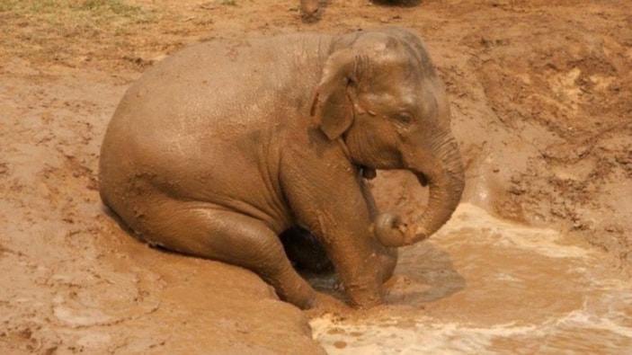 Afrika ve Asya'nın sıcak iklimlerinde yaşayan filler, doğanın sunduğu en etkili serinleme yöntemlerinden biri olan çamur banyosunu tercih ediyor.