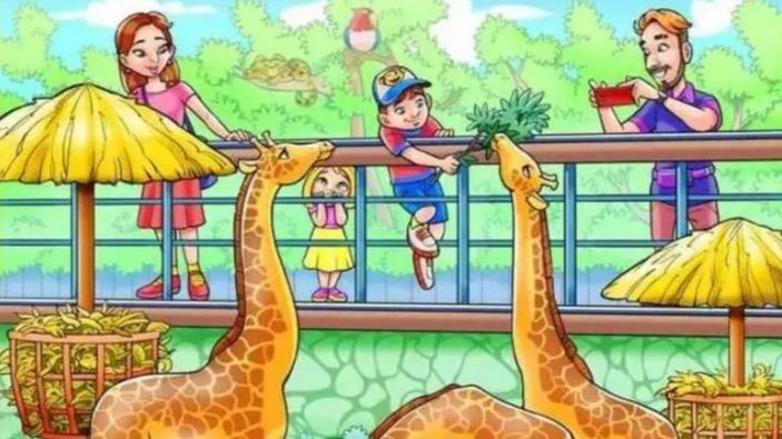 Resimdeki hayvanat bahçesinde, zürafaların arasında gizlenen bir maymun bulunuyor. Bu maymunu 10 saniye içinde bulabilir misin? Zekanı test et.