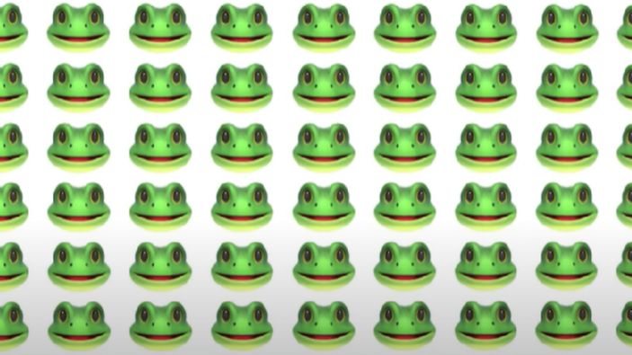 Resimde bulunan onlarca kurbağa emojisi arasında bir tane farklı emoji bulunuyor.