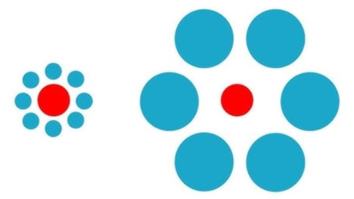 Sadece 5 saniyede, hangi kırmızı noktanın daha büyük olduğunu bulmanız gerekiyor.