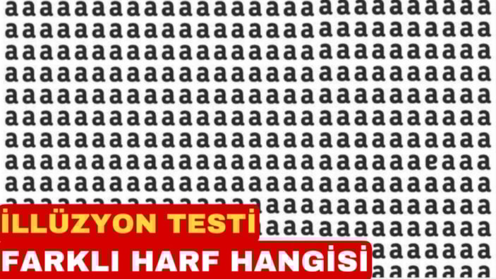 Bugünün görsel illüzyon mücadelesinde, "e" harfi ızgaradaki "a"ların arasında saklanıyor. "e" harfini 7 saniyede bulabilir misin? Gözlem becerilerini şimdi test et!