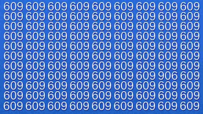 Tekrar eden sayılar arasında gizlenen 906, 609'larla uyum sağlayacak şekilde ustaca gizlenmiştir. Sadece üstün gözlem becerilerine ve yüksek IQ'ya sahip olanlar bunu 5 saniye içinde bulabilir. Olasılıkları alt edip zamanında tespit edebilir misiniz?