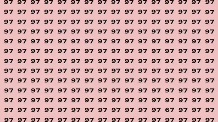 Yukarıdaki görselde 97 sayılarıyla dolu bir ızgara yer alıyor. Aralarında bir tane 67 sayısı gizli.