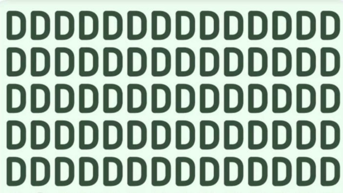 Yukarıdaki resimde D harfinin 8 satır ve 14 sütuna dağılmış hali gösterilmektedir. D'lerin arasında O harfi de gizlidir. Belirtilen sürede O harfini bulabilir misiniz?