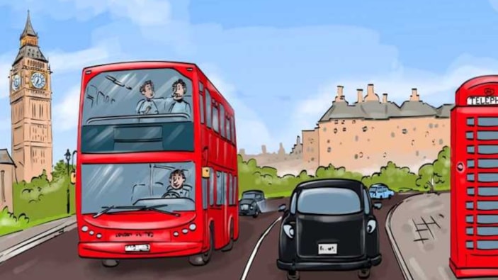 Arka planda büyük bir otobüs var, Londra'da bir okul otobüsü trafikte, yayalar yürüyor... Ama tekrar ve biraz daha dikkatli bakarsanız, resimde çok büyük bir hatanın gizli olduğunu fark edeceksiniz.