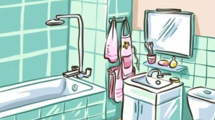 Resimdeki mantık hatası banyoda mutfak eşyalarının bulunmasıdır. Mutfak önlüğü ve çatal bıçağın banyoda olması mantıksızlık içermektedir.