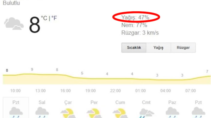 Hava durumu uygulamalarında yer alan tahmin raporlarında belli başlı ibareler bulunur. Bu ibarelerden biri olan “yağış ihtimali” çoğu kişi tarafından o gün içinde yağmur yağma olasılığı olarak yorumlanır.
