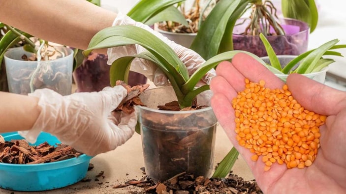 Orkidelerin sağlıklı ve güçlü büyümesi için alışılmışın dışında bir yöntem gündemde: suda bekletilmiş ezilmiş mercimek ve bir çay kaşığı zerdeçal karışımı!