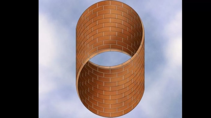 İlk bakışta görüntü, sıradan bir silindiri ya da tuğlalarla örülmüş bir tüneli andırıyor olabilir. Ancak daha dikkatli incelendiğinde, yapının aslında bir Möbius şeridi gibi bükülmüş olduğunu fark edeceksiniz. Bu, sıradan bir daire değil, tek yüzeyli ve tek kenarlı olan bu yapı, optik illüzyonun merkezinde yer alıyor.