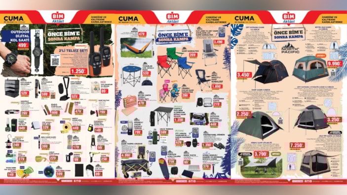 Yaz mevsiminin gelmesiyle birlikte doğa kaçamakları ve kamp planları hız kazandı. Türkiye’nin önde gelen market zincirlerinden BİM, bu talebe kayıtsız kalmadı. 20 Haziran 2025 Cuma günü satışa sunulacak kamp ürünleriyle kampçılara büyük kolaylık sağlayacak. İşte BİM 20 Haziran aktüel katalog...