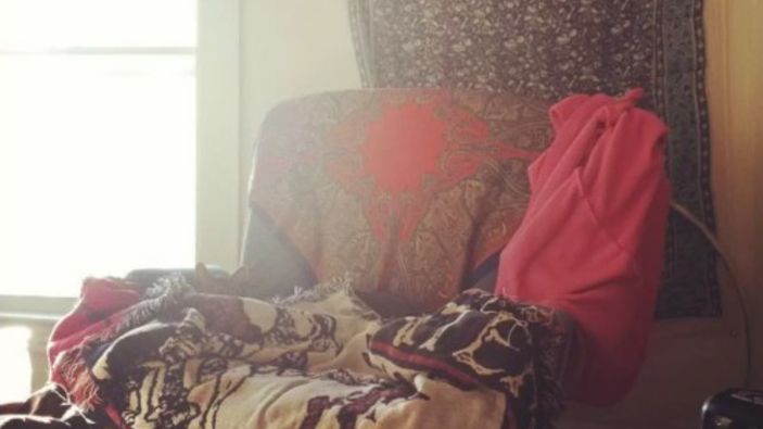 Yukarıda oturma odasının bir köşesinin resmi yer alıyor. Resmin bir köşesinde bir kedi gizli.