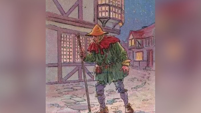 Yukarıdaki görselde sokakta dolaşan bir gece bekçisi yer alıyor.