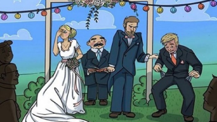 Aşağıdaki resimde bir düğün merasimi yer alıyor. Ancak ortada bir problem var. Burada sizden istenilen kayıp yüzüğü bulmak. Kayıp yüzük buralarda bir yerde ama kimse göremiyor.