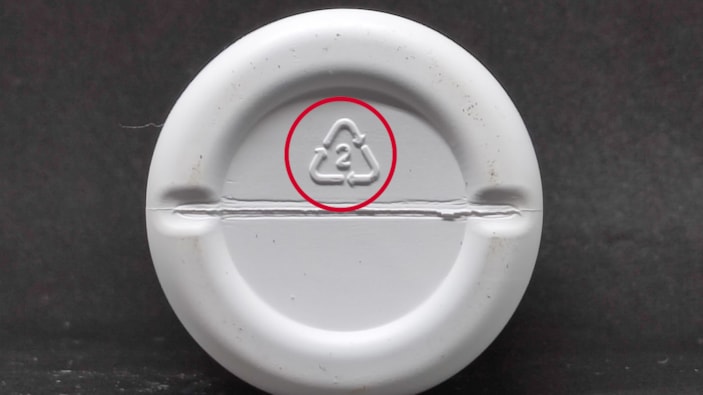 Üçgenin içindeki 2 rakamı ise HDPE (yüksek yoğunluklu polietilen) plastiğini temsil ediyor ve bu da daha ağır cisimleri taşıyabilme özelliğine sahip olduğunu belirtiyor. Bu sebepten genellikle deterjan ve şampuan şişlerinin altında yer alıyor ve 1 numaralı şişelerin aksine içlerine tekrardan bir şeyler doldurulup kullanılabiliyor.