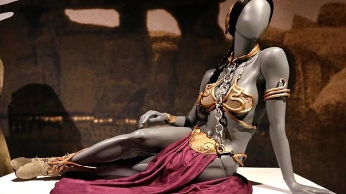 Star Wars evreninde Jabba the Hutt'ın tahtına zincirli olarak gösterilen altın bikini, sinema tarihinin en tanınmış giysilerinden biri olma özelliğini taşıyor. Richard Miller tarafından tasarlanan ve 7 parçadan oluşan bu set, içinde takılar da barındıran set satış rakamıyla dudak uçuklattı.