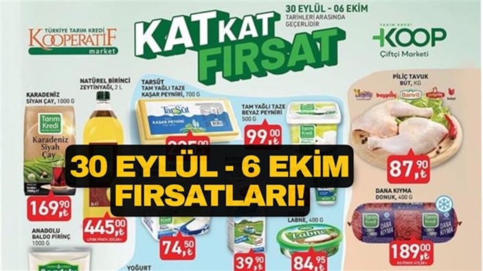 Tarım Kredi Kooperatif Market, 30 Eylül - 6 Ekim arasında geçerli olacak temel gıda, kahvaltılık, şarküteri, et/tavuk ve temizlik ürünlerini yayımlandı. İşte, yeni indirimli fırsatlar...