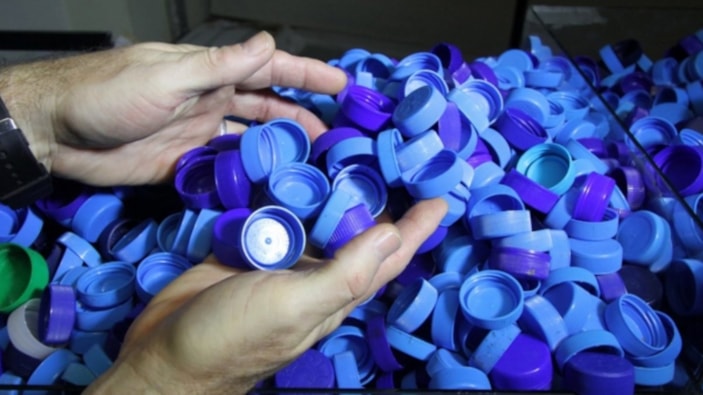 Su şişelerinden ayrılan küçük mavi kapaklar, aslında büyük bir iyiliğe vesile oluyor.