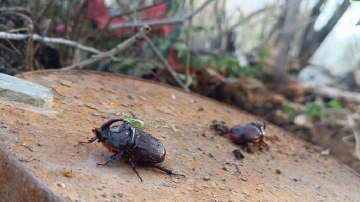 Dünyanın en güçlü böceği olarak bilinen gergedan böceği, Hakkari’nin Yüksekova ilçesinde görüldü.