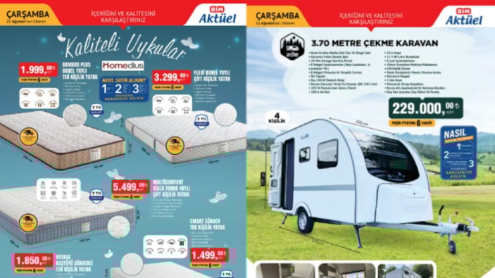 BİM yine yaptı yapacağını! Bu hafta çekme karavan ve ucuza yatak çeşitleri geliyor. Üstelik peşin fiyatına tam 6 taksit imkanı da sunuluyor. İşte BİM 21 Ağustos indirim kataloğu…
