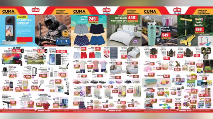 Bu dönemde BİM mağazalarında dikkat çeken ürünler arasında aksiyon kamerası, televizyon ve çay makinesi yer alıyor.