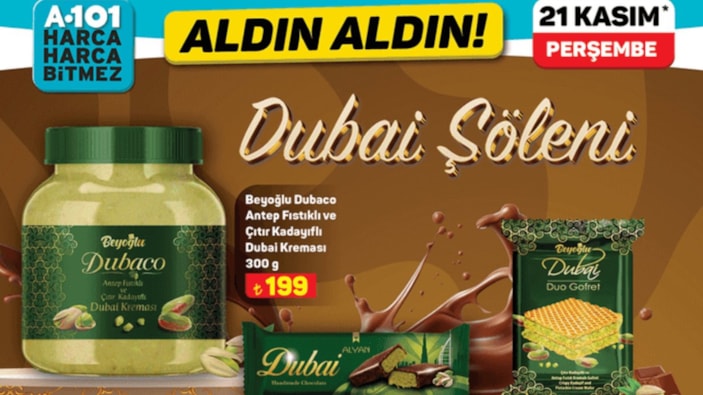Yüzlerce lira vermeyin! A101'de Dubai şöleni başladı: Dubai gofret 25 TL, çikolata 99 TL, krema 199 TL....