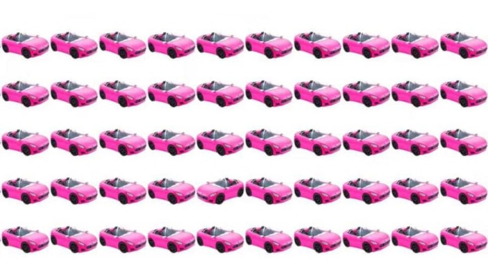 Yukarıdaki resimde onlarca pembe araba yer alıyor. Hepsi aynı gibi görünse de, arabalardan biri farklı.